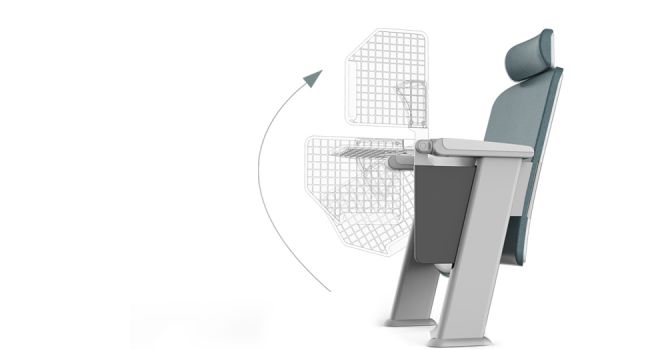 تقوم وسادة المقعد بضبط الراحة بناءً على الوضعية وتطوى تلقائيًا عندما يقف المستخدم.
