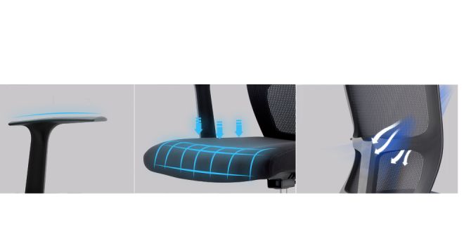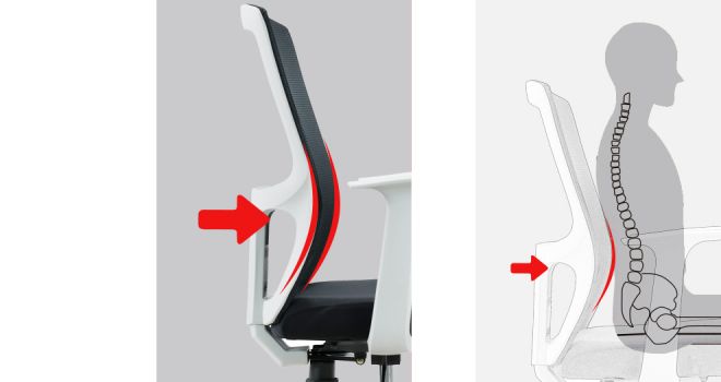 يركز مسند الظهر على شكل حرف S على دعم العمود الفقري القطني، ويتكيف مع ارتفاعات وأشكال مختلفة، ويركز على دعم ورعاية جسمك العمود الفقري القطني.