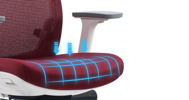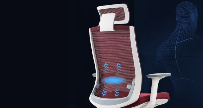 مجهز بدعامة قطنية مخفية، والتي يمكن رفعها لأعلى ولأسفل لحماية العمود الفقري القطني ولتكون الدعم الأكثر استقرارًا