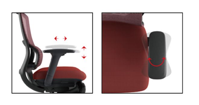 آلية دعم ذاتية تعمل بمقبض بزاوية إمالة كبيرة تبلغ 135 درجة يتم ضبط قوة الإمالة تلقائيًا