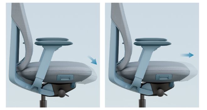 يتميز بوسادة إسفنجية ناعمة ومريحة، كما بالإضافة إلى القدرة على ضبط عمق المقعد العلوي، يوفر الكرسي للمستخدمين أحجامًا مختلفة ويوفر دعمًا أكثر شمولاً، مما يسمح لهم بالعمل بشكل أكثر راحة في المكتب.