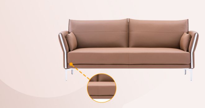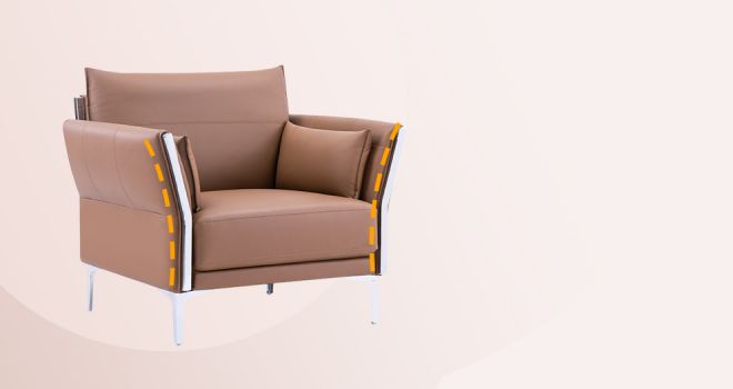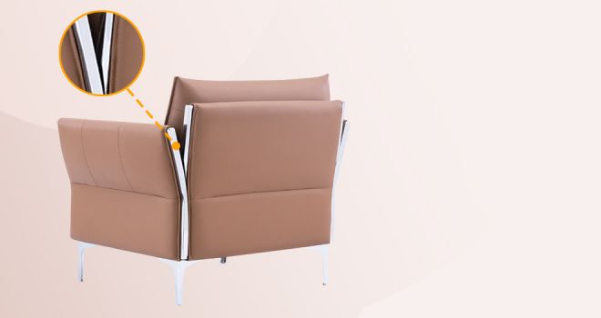 يتم استخدام تصميم البطانة المعدنية في مسند الظهر ومسند الذراع. يؤدي تراكب المعدن والجلد إلى تحسين الديكور والتطبيق العملي، ويمكن مطابقته وتطبيقه بسهولة في سيناريوهات متعددة.